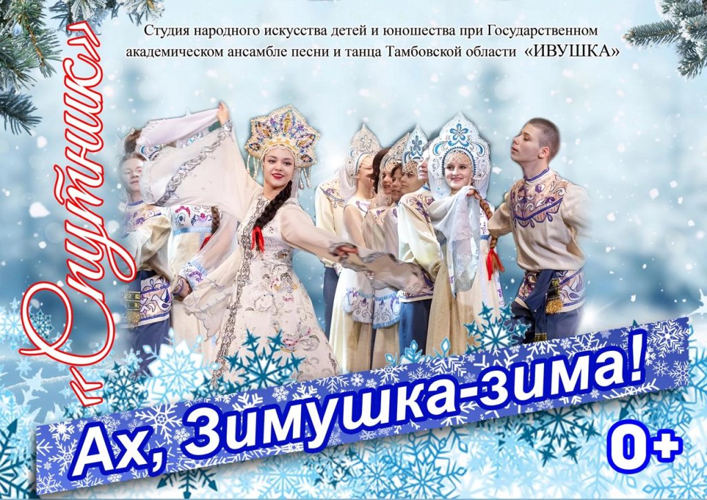 Новогодняя концертная программа с участием Деда Мороза и Снегурочки! В программе задействованы лучшие номера детской студии "Спутник" при Государственном академическом ансамбле песни и танца Тамбовской области "Ивушка". Вокальная группа студии вовлечет зрителей в новогодние колядки. Юные танцоры закружатся в снежном вальсе, исполнят сложные трюковые номера. Праздничное настроение юные артисты подарят зрителям в играх и конкурсах у настоящей елки. Здесь зрителей ждут призы и сюрпризы! Завершится представление праздничной снежной дискотекой